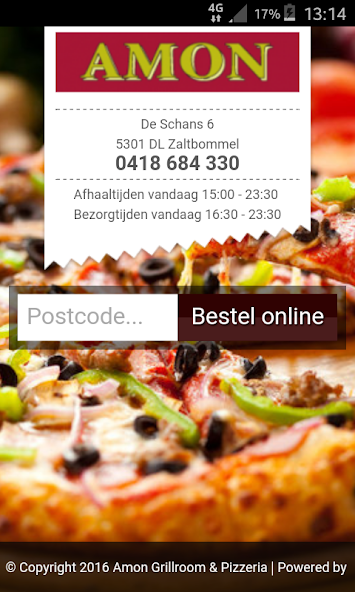 Amonアプリは、安全で速いおいしいパスタ、ピザ、トルコのピザなど、Zaltbommelとその周辺を注文します。理想的に自分の銀行を通じて直接オンラインで支払いましょう!